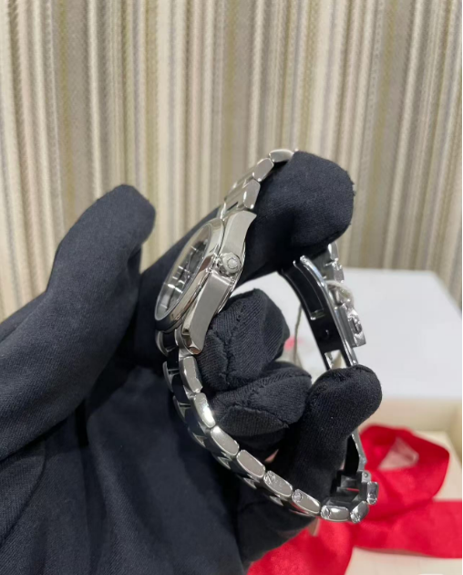 Calibre OMEGA 4061: Quartz movement with "Long Life" feature to maximize the autonomy of the battery. Exclusive red OMEGA logo with rhodium plated parts and circular graining.