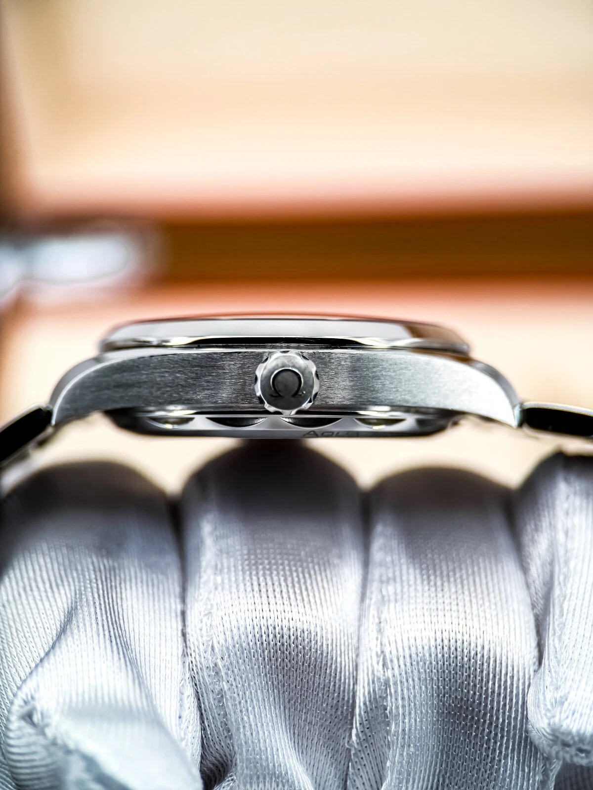 Crystal: Domed scratch‑resistant sapphire crystal with anti‑reflective treatment on both sides
