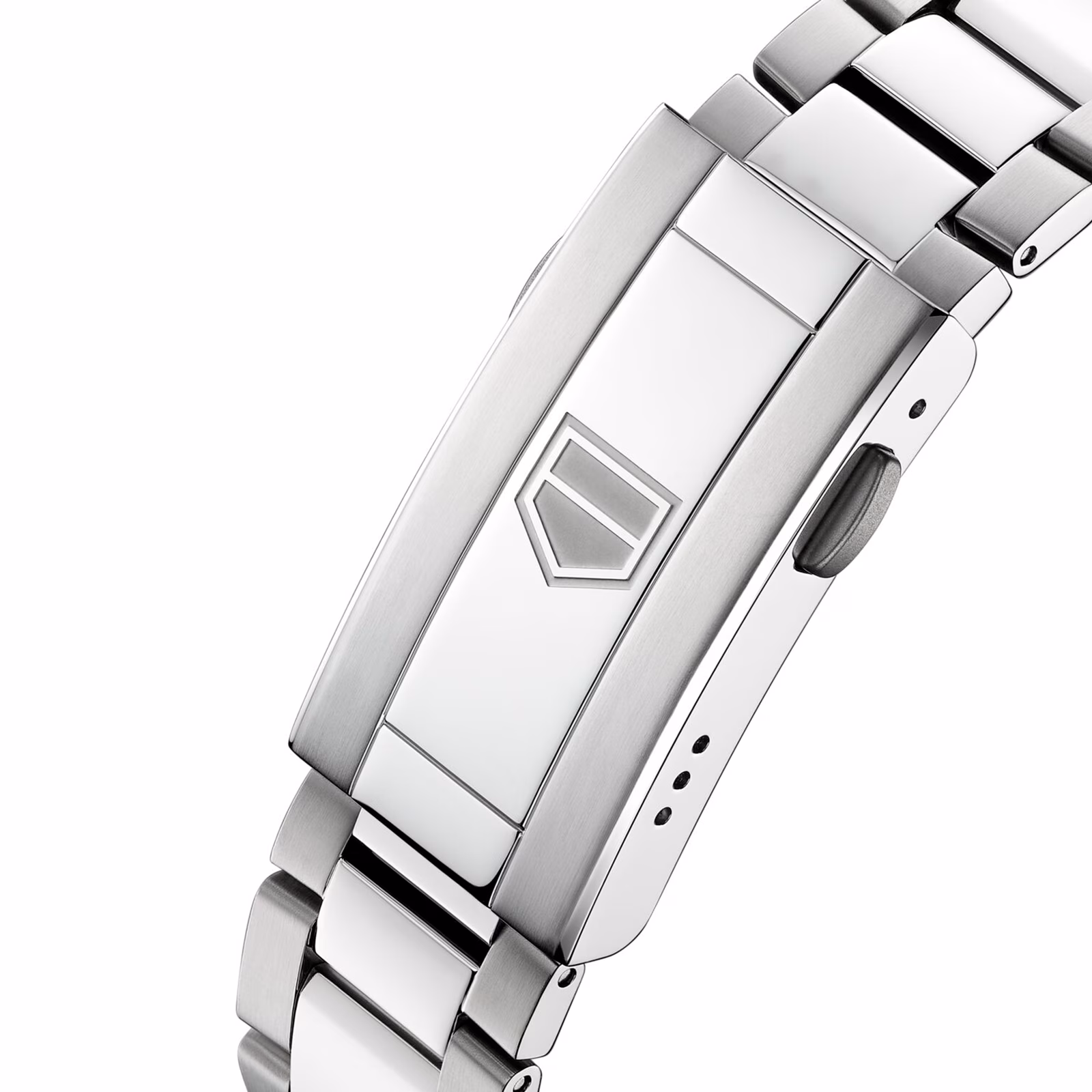 This versatile 40mm model pairs a stainless steel case with a co-ordinating steel bracelet, complete with double safety push buttons and a comfort extension link.