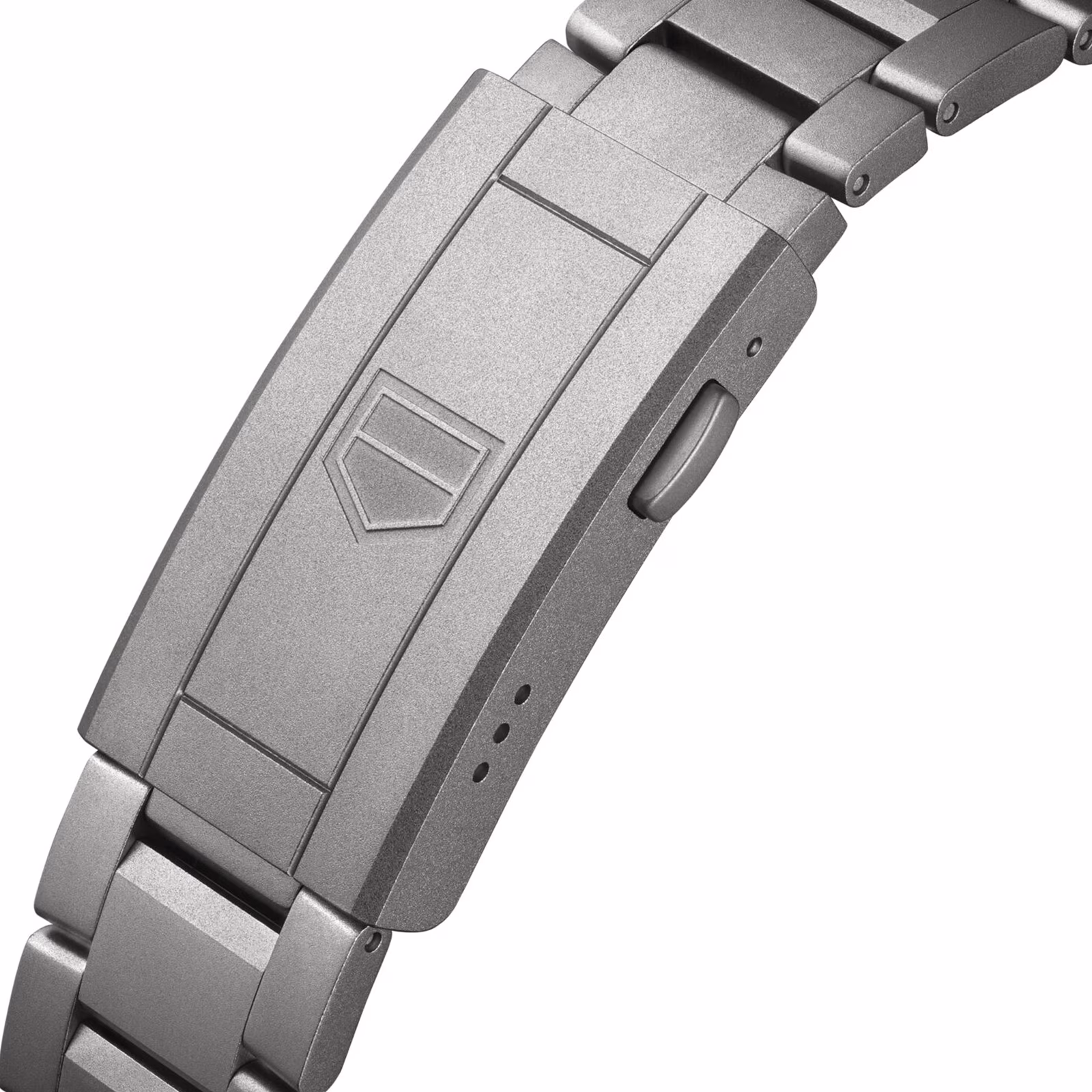 This 40mm model pairs a pressure-proof, full sandblasted Grade 2 titanium case with a co-ordinating three-row bracelet.