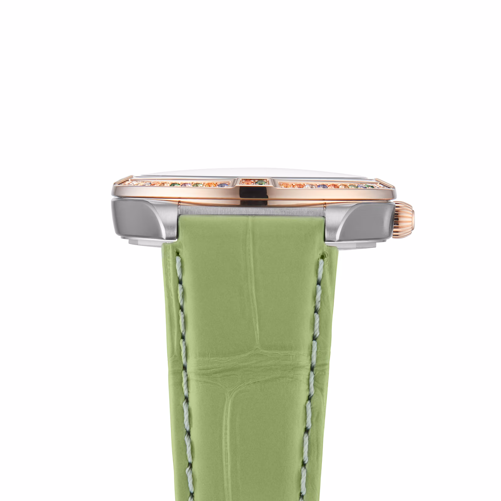 The cases – in stainless steel, with bezels in 18 k red or white gold – are elegantly sized at 36mm, making them a versatile choice for women’s wrists. Water-resistant up to 100 m, the timepieces are ready to accompany you on any adventure, whether a beachside escapade or sophisticated soirée.