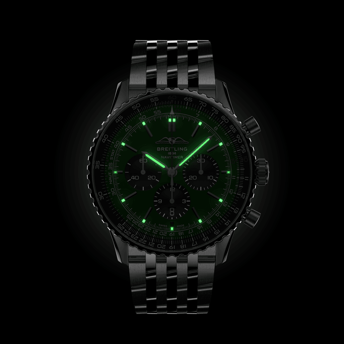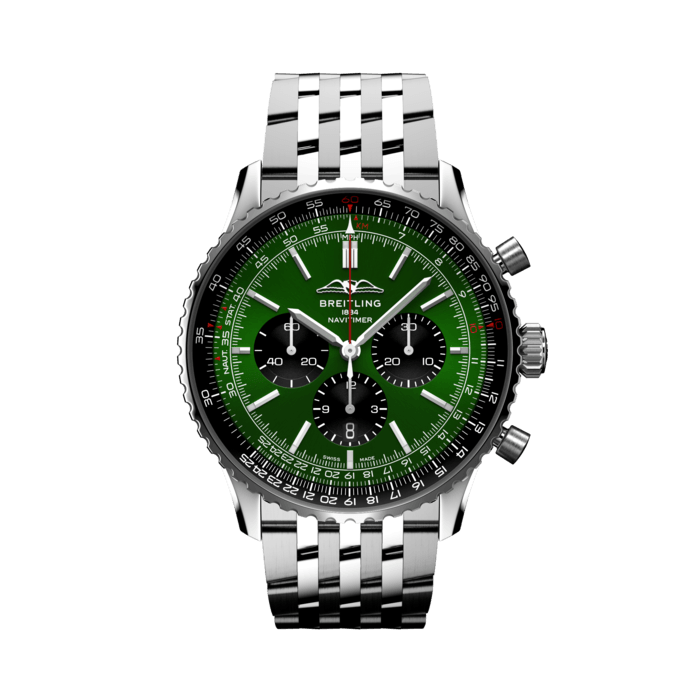 Experience the perfect blend of style and functionality with the Breitling Navitimer B01 Chronograph 46 AB0137241L1A1. This timepiece features a striking green dial accented with index hour markers and a practical date display. The chronograph function and slide rule add a touch of sophistication, while the 46mm stainless steel case ensures durability. The bidirectional rotating bezel and steel bracelet with deployment buckle offer both style and ease of wear. Powered by an automatic movement, this chronometer is the epitome of precision and reliability. Elevate your wrist game with the Breitling Navitimer B01 Chronograph 46 AB0137241L1A1.
