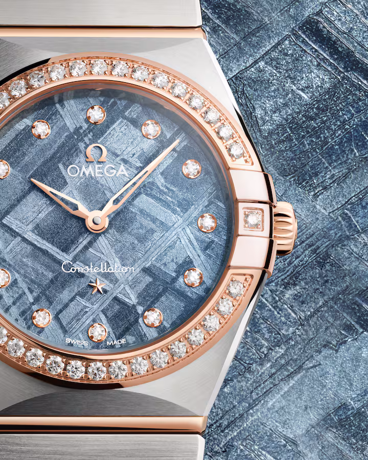 Calibre OMEGA 4061: Quartz movement with "Long Life" feature to maximize the autonomy of the battery. Exclusive red OMEGA logo with rhodium plated parts and circular graining.