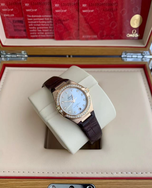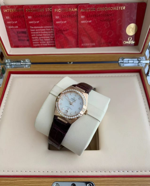 • 【7A Quality】Omega Constellation Ladies' Selection 29mm Sedna™ gold on leather strap 131.58.29.20.55.002