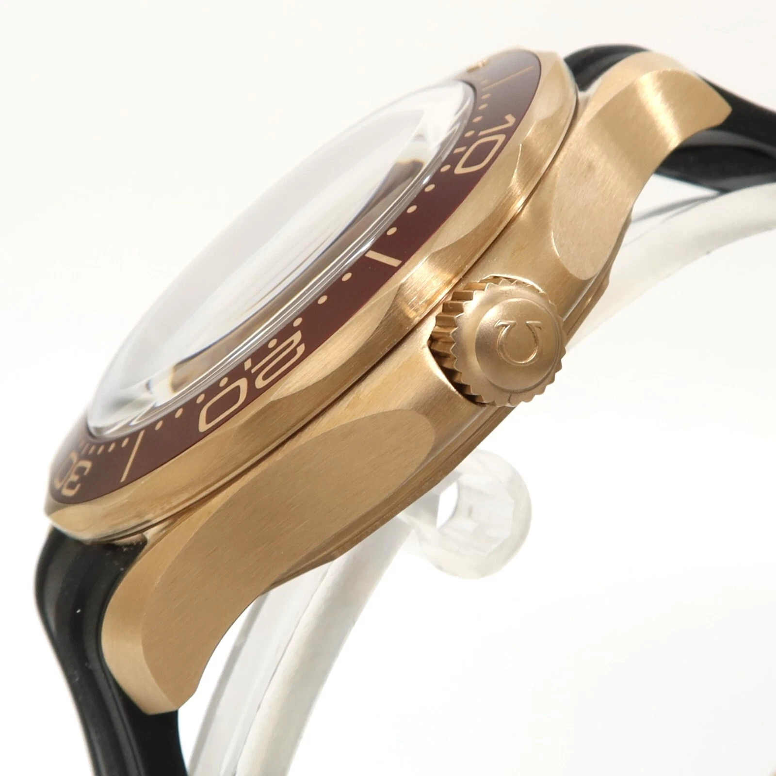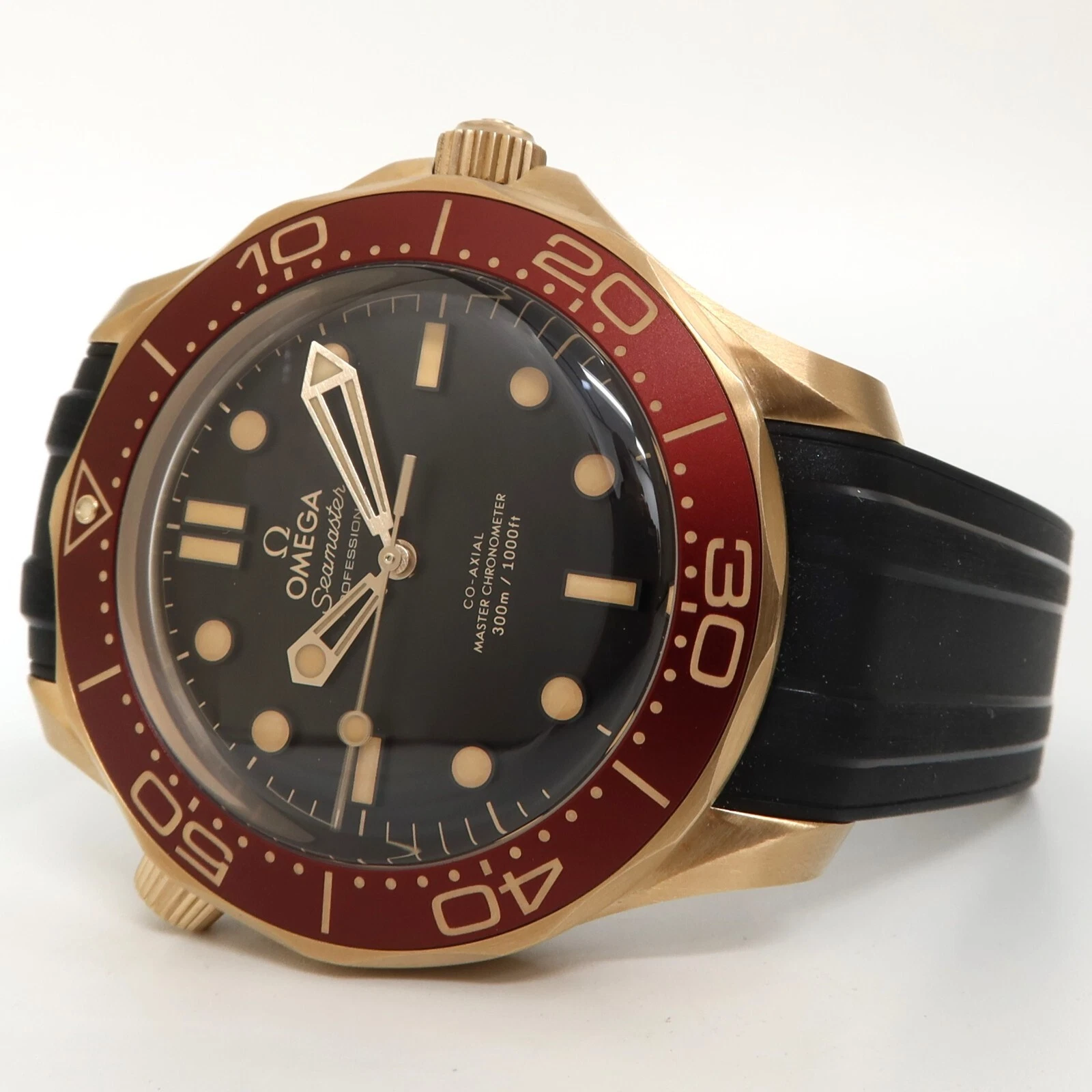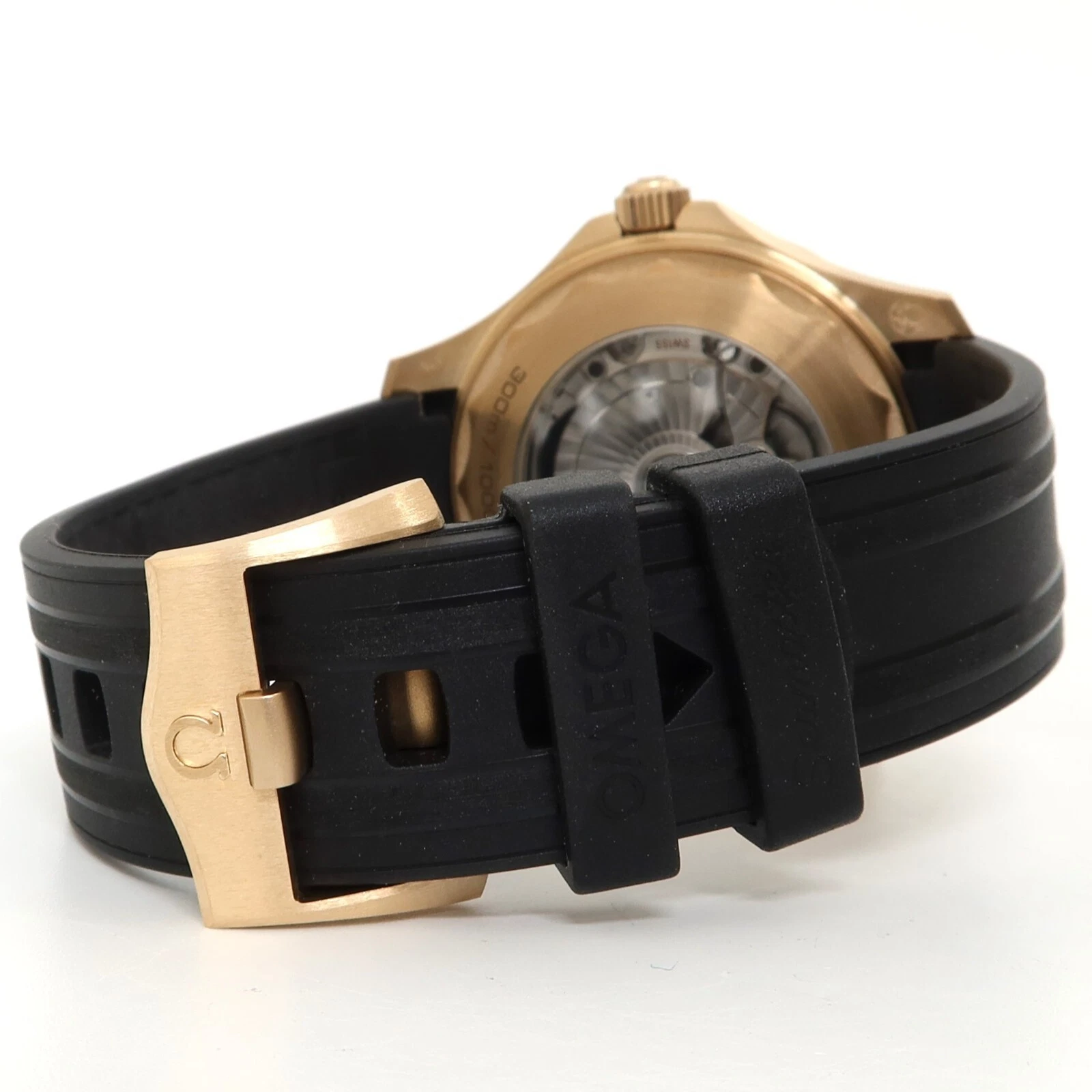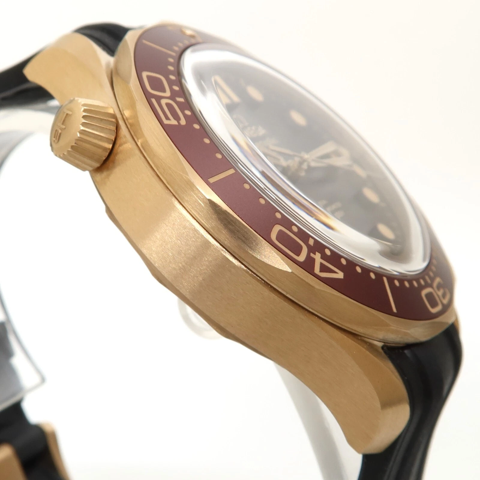 Discover the exquisite craftsmanship of the Omega Seamaster Diver watch. This timepiece features a sleek black dial adorned with dot and index hour markers, housed in a stunning 18k bronze gold case. The striking burgundy aluminum bezel with a diving scale adds a pop of color and functionality to this luxury watch. Equipped with a helium escape valve and anti-magnetic properties, this automatic chronometer is a reliable companion for all your underwater adventures. The black rubber strap and bronze gold tang buckle provide both style and comfort. Experience the perfect blend of luxury and performance with the Omega Seamaster Diver watch.