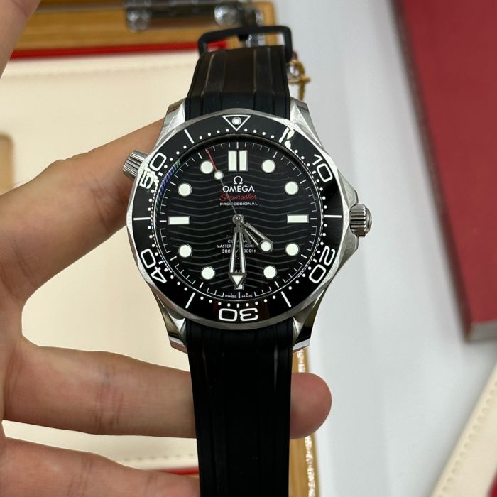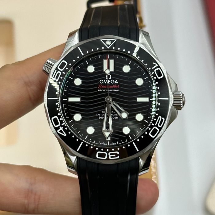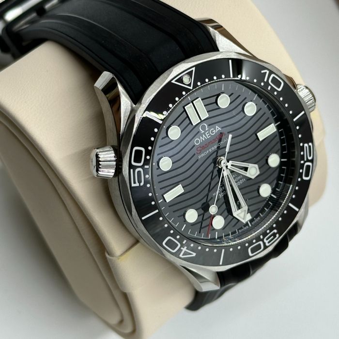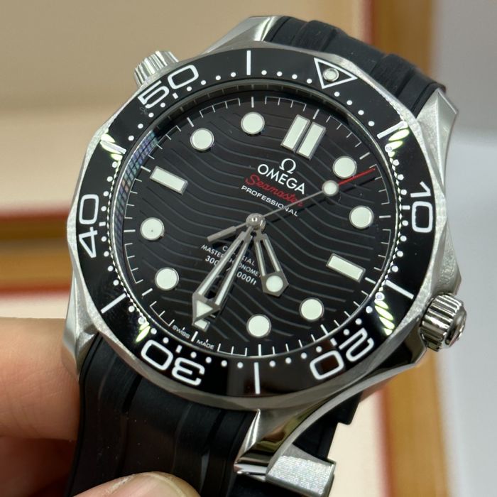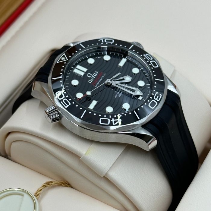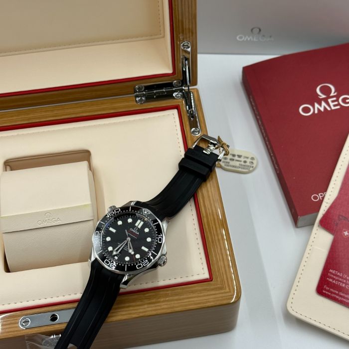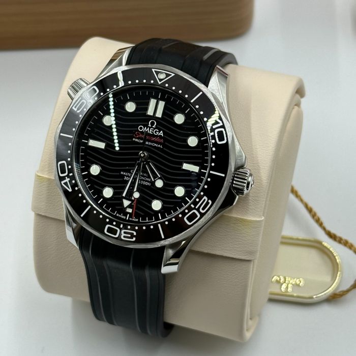 Unworn Omega Seamaster DIVER 300M CO‑AXIAL MASTER CHRONOMETER 210.32.42.20.01.001. 42 mm, Black dial, Steel case, Ceramic bezel, 8800 calibre, Self Winding Movement, 55 hours power reserve, Rubber strap with Pin buckle clasp. Water resistant to 300 m.