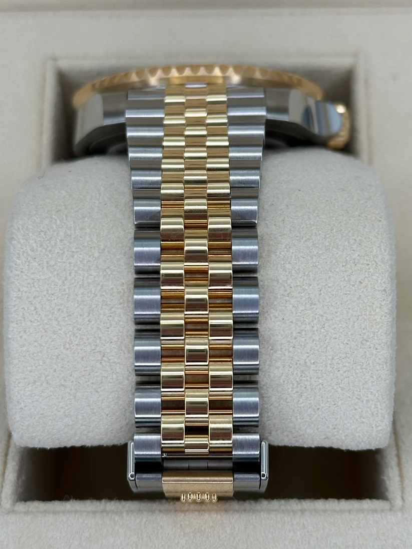 Gold is coveted for its lustre and nobility. Steel reinforces strength and reliability. Together, they harmoniously combine the best of their properties. A true Rolex signature, Rolesor has featured on Rolex models since the early 1930s, and was trademarked as a name in 1933. It is one of the prominent pillars of the Oyster collection.