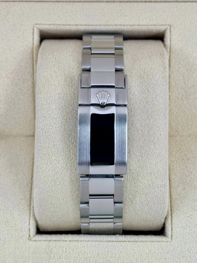 – Scratch-resistant sapphire – Laser etched small Rolex Crown Logo at 6 o’clock