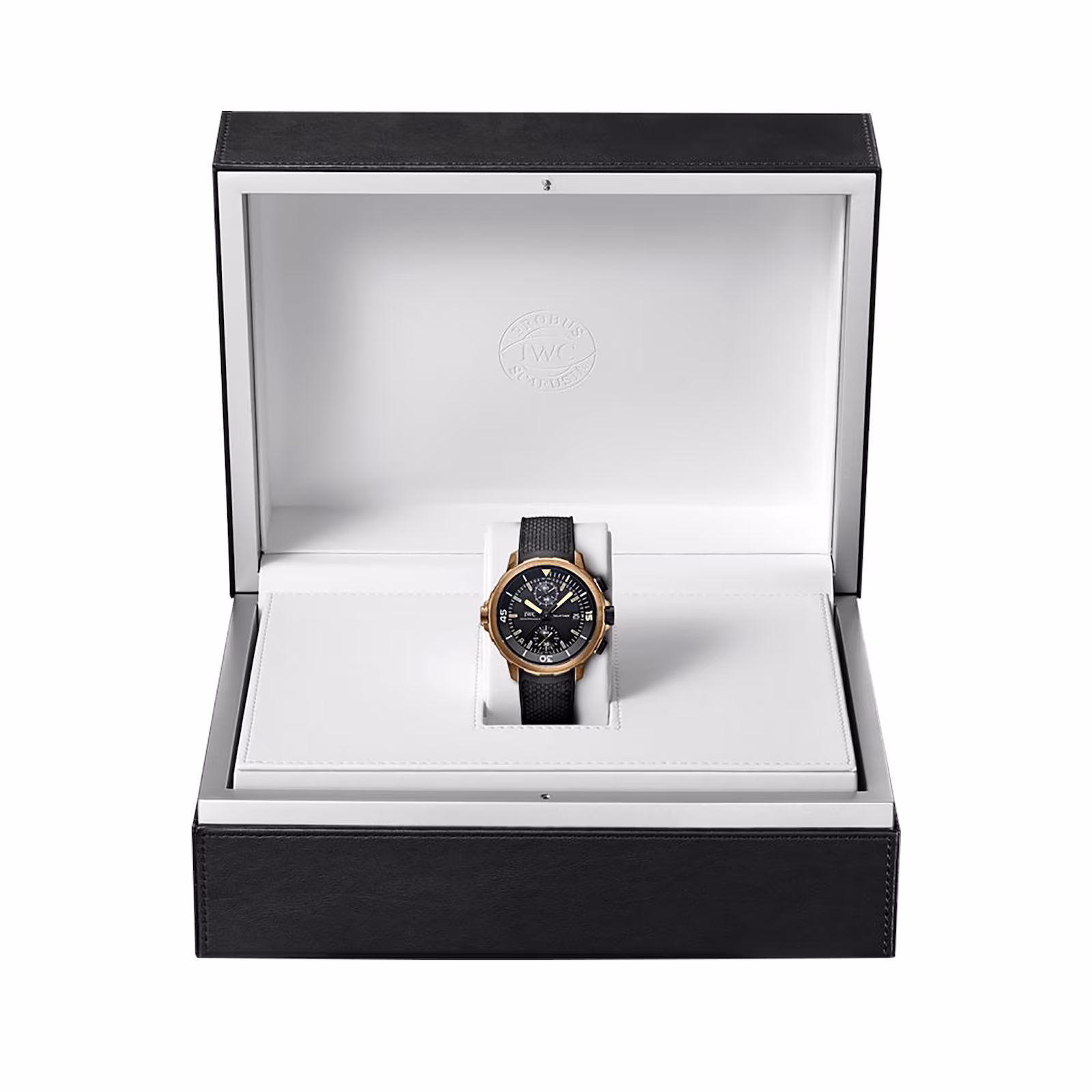 The first of its kind in IWC history, this iconic timepiece features a sturdy 44mm bronze case, paired with a bold black dial with luminescent hands and indices. The date display and chronograph complications, as well as the anti-reflective sapphire glass lens provide optimum visibility and functionality.