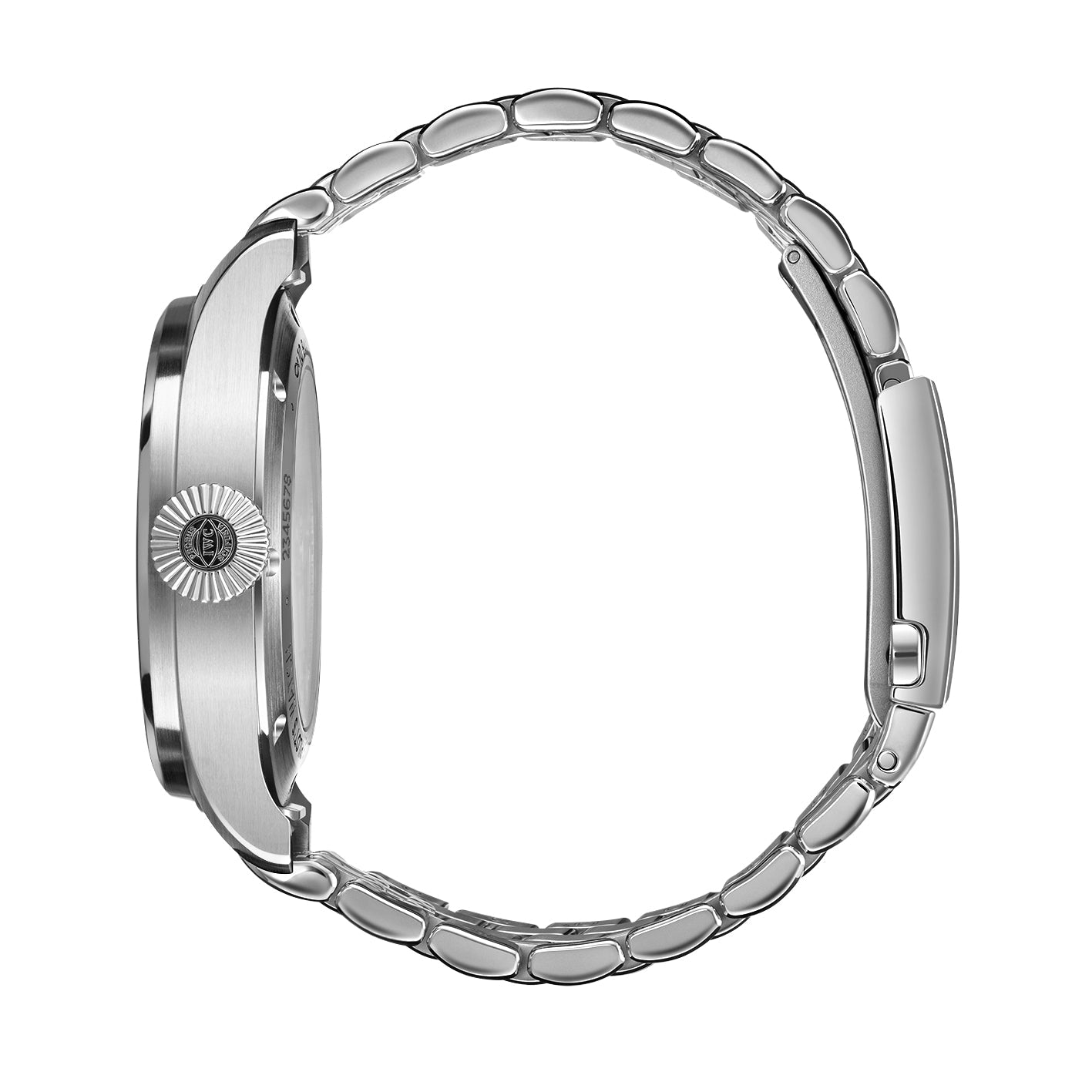 - Presented in a 43 mm stainless steel case and secured by a co-ordinating stainless steel bracelet