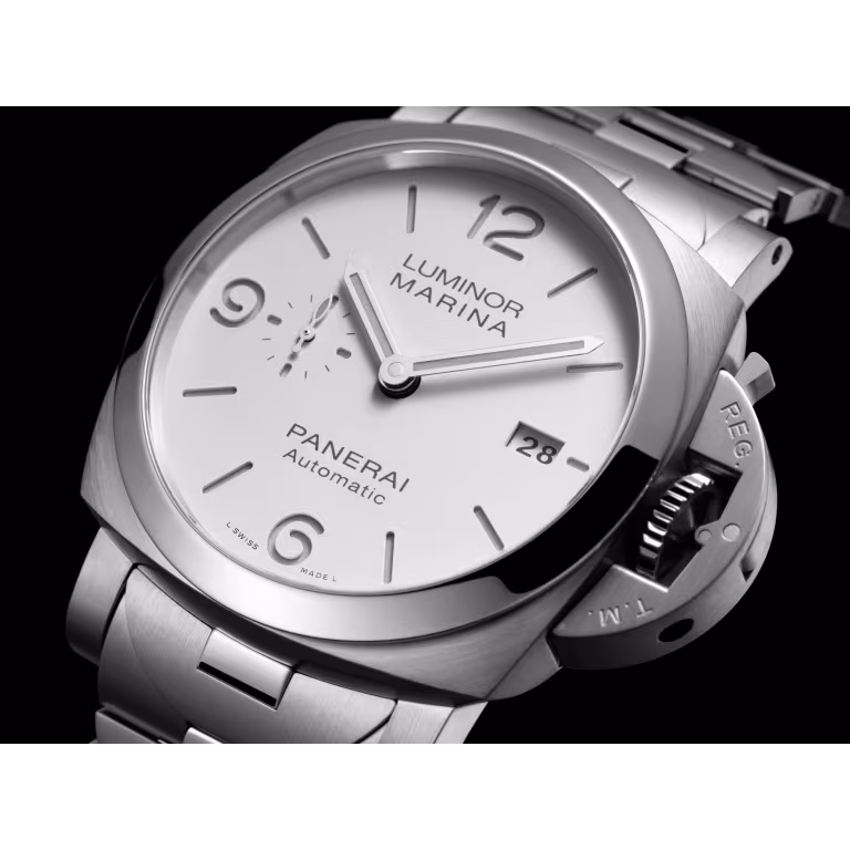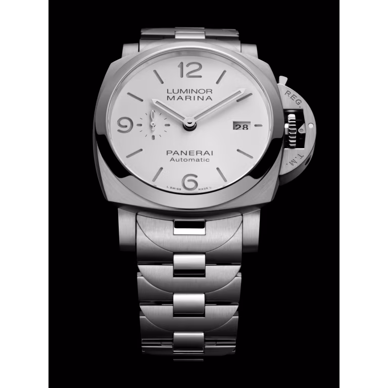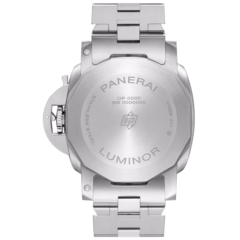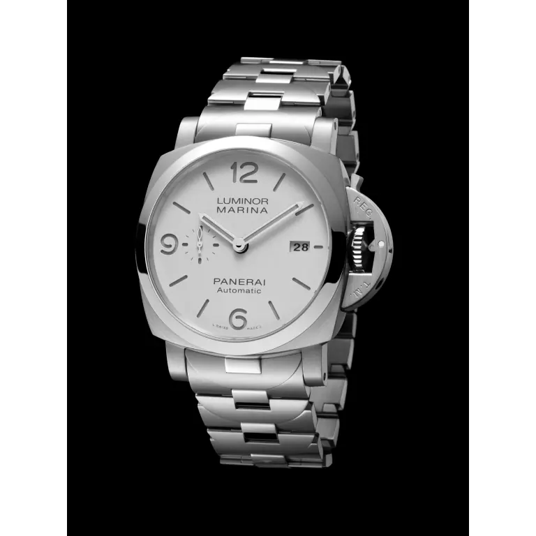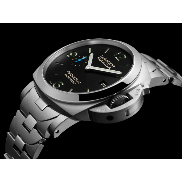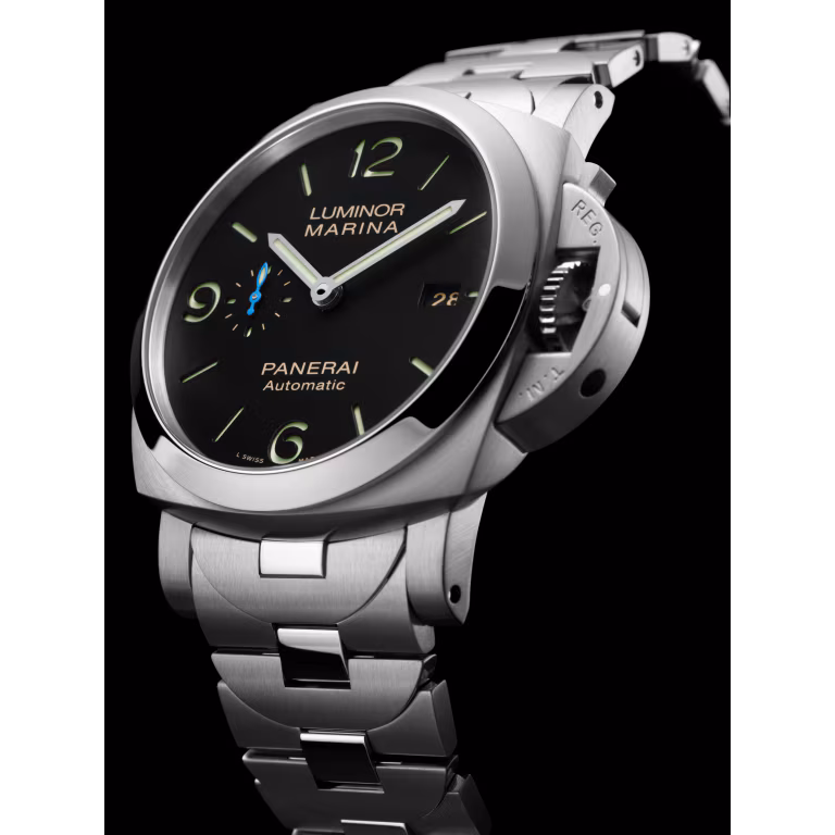 Black with luminous Arabic numerals and hour markers Date at 3 o'clock and small seconds at 9 o'clock.