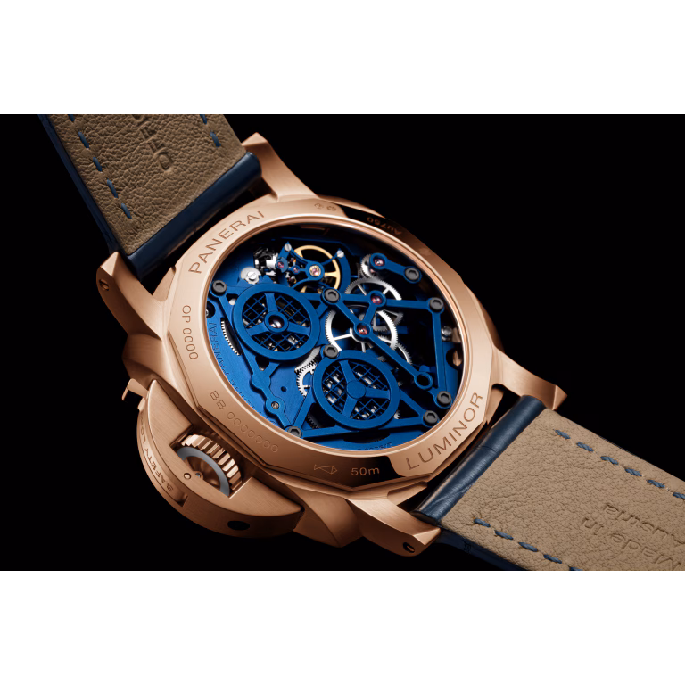 Skeleton hand-wound mechanical, P.2005/T calibre, 16¼ lignes, 10.05 mm thick, 31 jewels, Glucydur® balance, 28,800 alternations/hour. Incabloc® anti-shock device. Power reserve 6 days, three barrels. 277 components