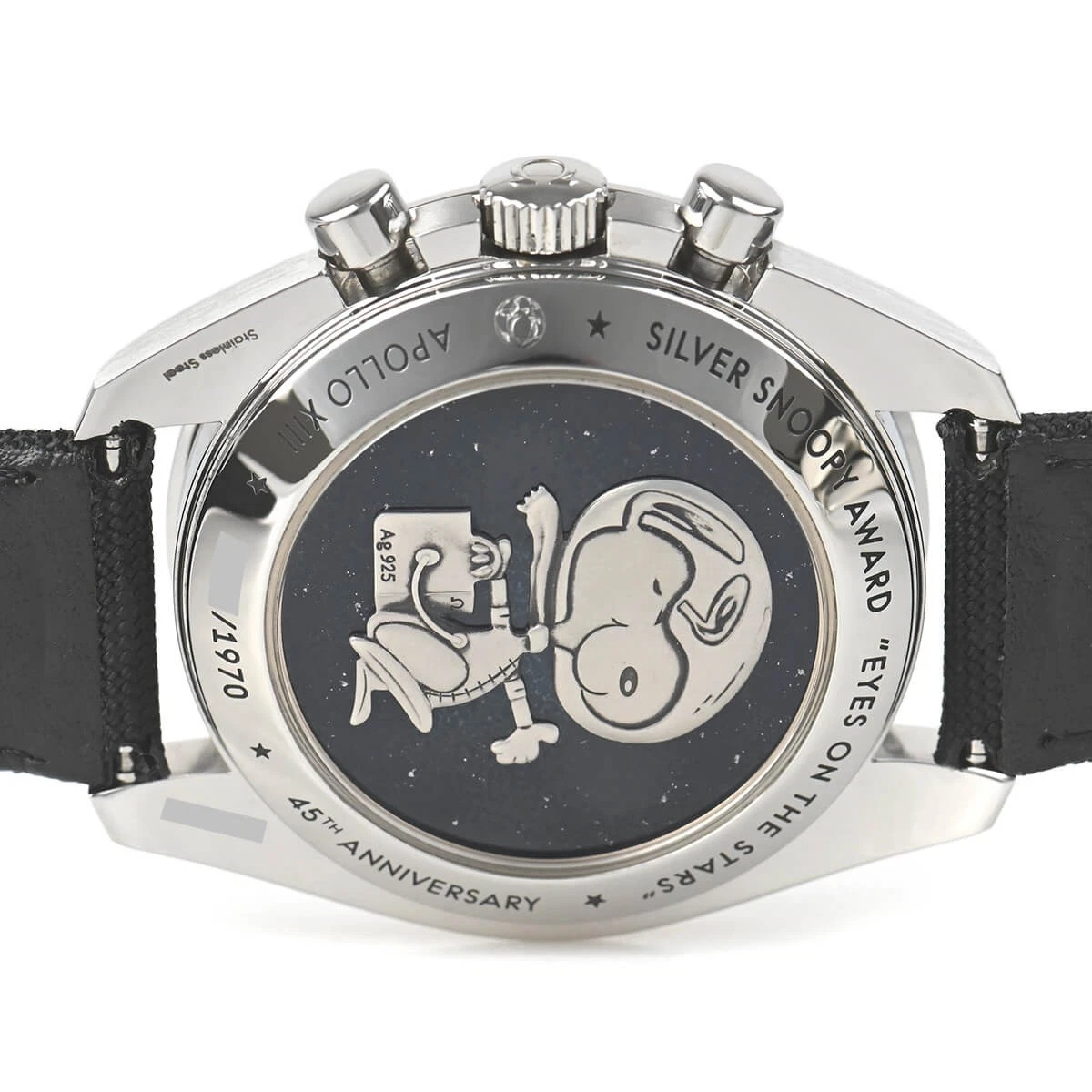 Celebrate the Apollo 13 mission with the Omega Speedmaster Moonwatch Silver Snoopy Anniversary Edition. This expertly crafted timepiece features the iconic Snoopy character on the dial, a silver case, and a manual winding movement. Limited to only 1,970 pieces, this watch is a must-have for any watch enthusiast.