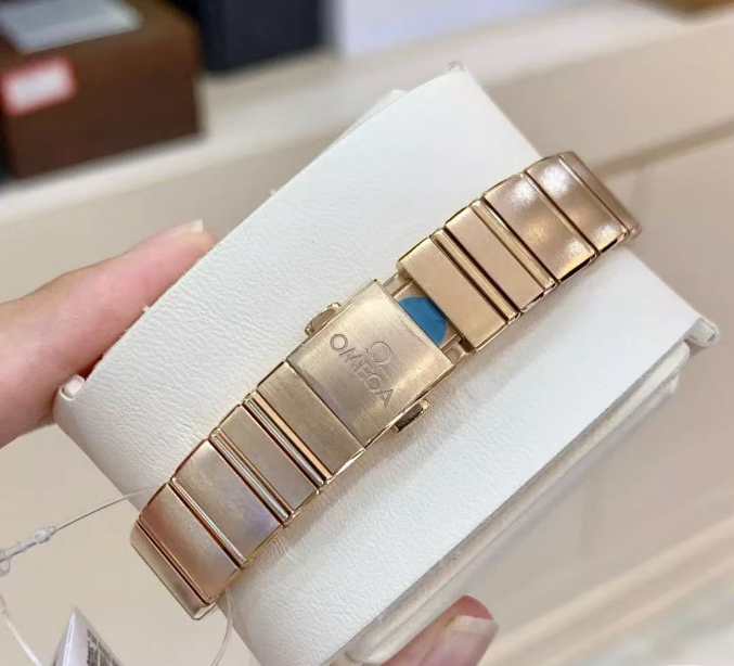 Calibre OMEGA 4061: Quartz movement with "Long Life" feature to maximize the autonomy of the battery. Exclusive red OMEGA logo with rhodium plated parts and circular graining.
