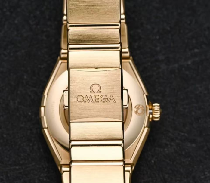 Calibre OMEGA 4061: Quartz movement with "Long Life" feature to maximize the autonomy of the battery. Exclusive red OMEGA logo with rhodium plated parts and circular graining.