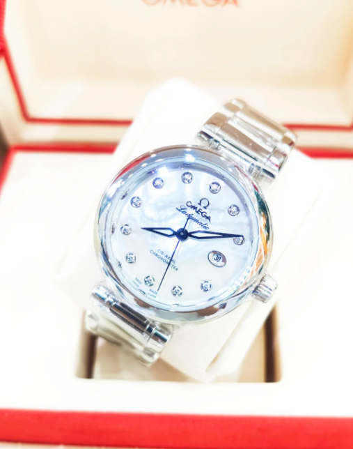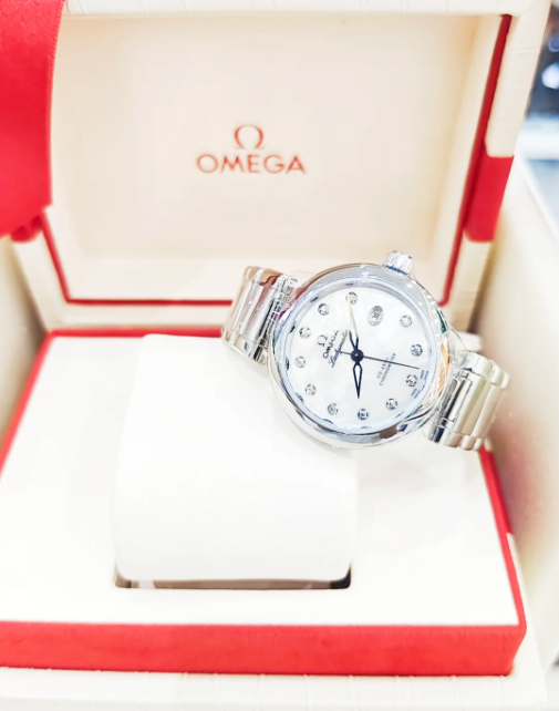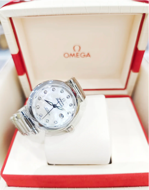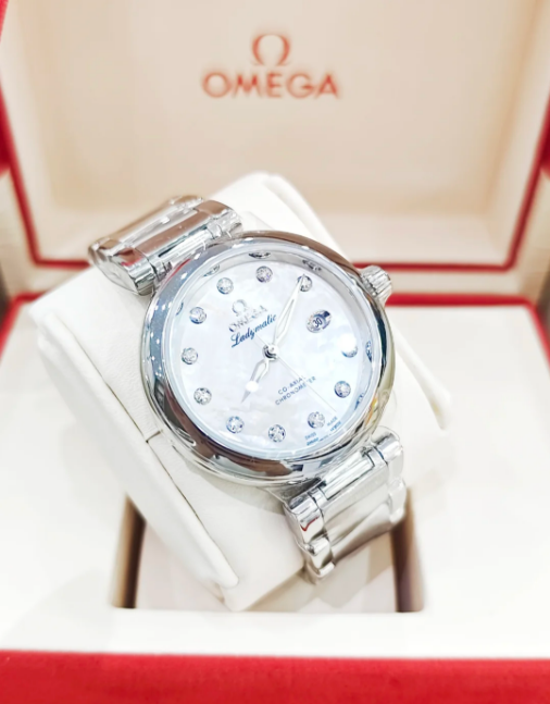 • 【7A Quality】Omega De Ville Ladymatic 34mm White Dial with Diamonds Stainless Steel Bracelet 425.35.34.20.55.002