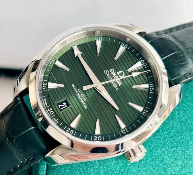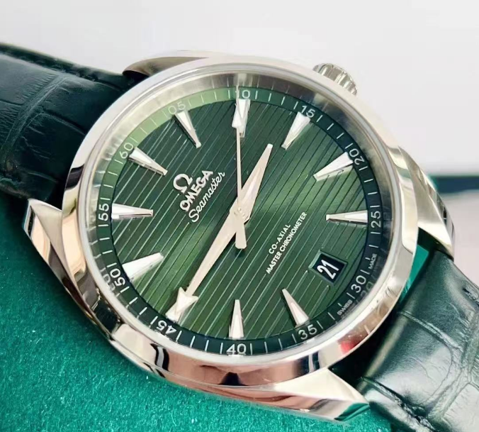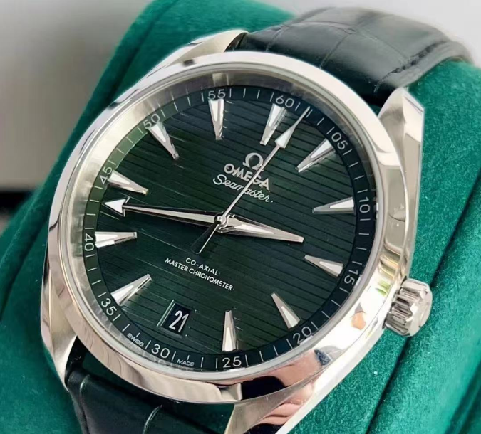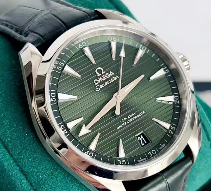 Unworn Omega Seamaster AQUA TERRA 150M CO‑AXIAL MASTER CHRONOMETER 220.13.41.21.10.001. 41 mm, Green dial, Steel case, Steel bezel, 8900 calibre, Self Winding Movement, 60 Hours power reserve, Leather strap with Foldover clasp. Water resistant to 150 m.