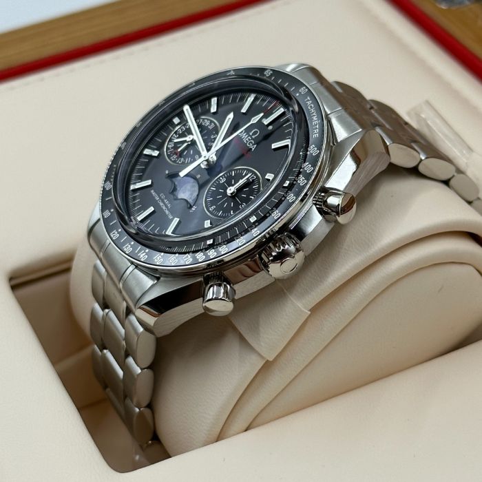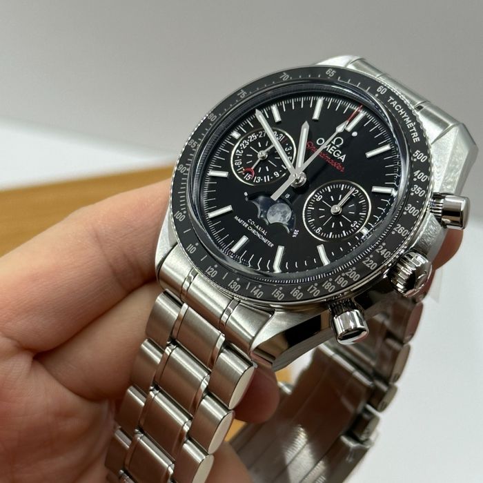 【7A Quality】Omega Speedmaster Moonphase Black Dial 44.25mm Stainless Steel Bracelet 304.30.44.52.01.001