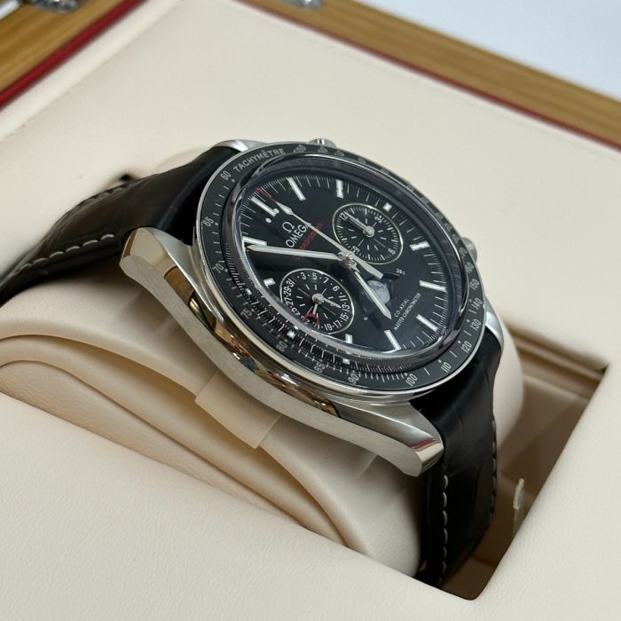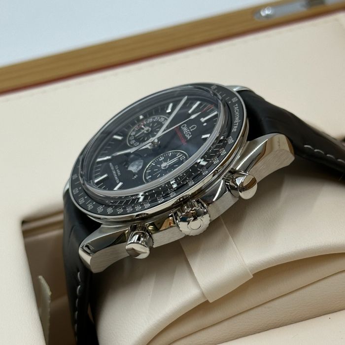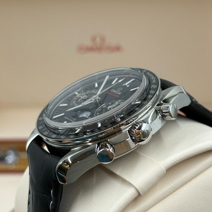 【7A Quality】Omega Speedmaster Moonphase Black Dial 44.25mm Stainless Steel Strap 304.33.44.52.01.001