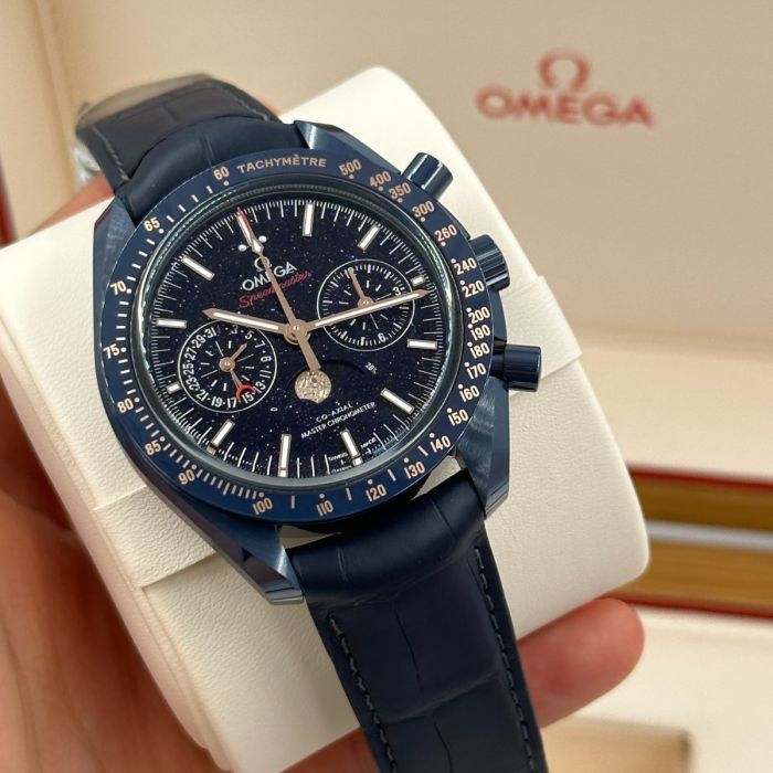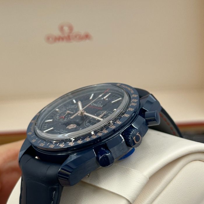 • 【7A Quality】Omega Speedmaster Moonphase Blue Dial 44.25mm Blue ceramic Strap 304.93.44.52.03.002