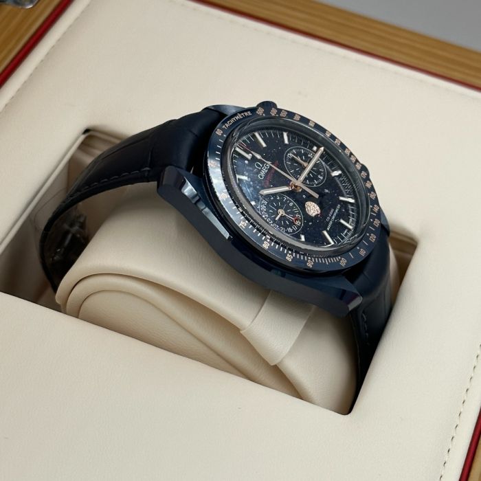 【7A Quality】Omega Speedmaster Moonphase Blue Dial 44.25mm Blue ceramic Strap 304.93.44.52.03.002