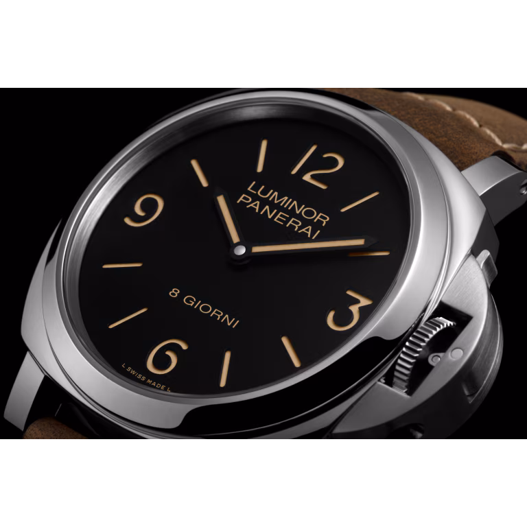Hand-wound mechanical, P.5000 calibre, 15 ½ lignes, 4.5 mm thick, 21 jewels, Glucydur® balance, 21,600 alternations/hour. Incabloc Parechoc® anti-shock device. Power reserve 8 days, two barrels