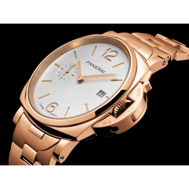 Strap: Polished and brushed Panerai Goldtech™ with OP logo engraved. PAM Click™
