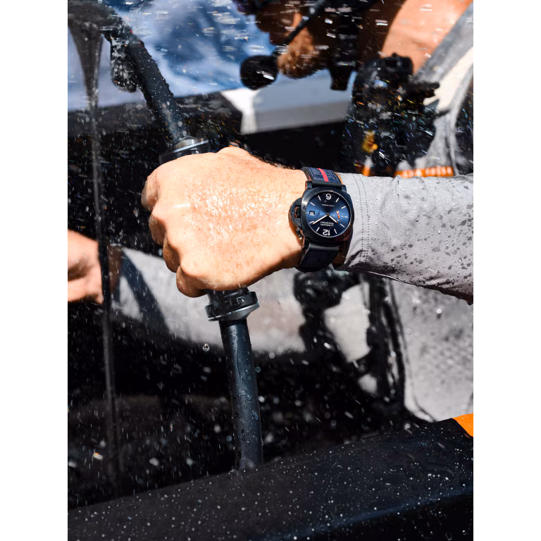 Strap: Bi-material rubber/textile Luna Rossa dark blue, T/T stitching, STD, 22/20, BA, PAM Click Release System™