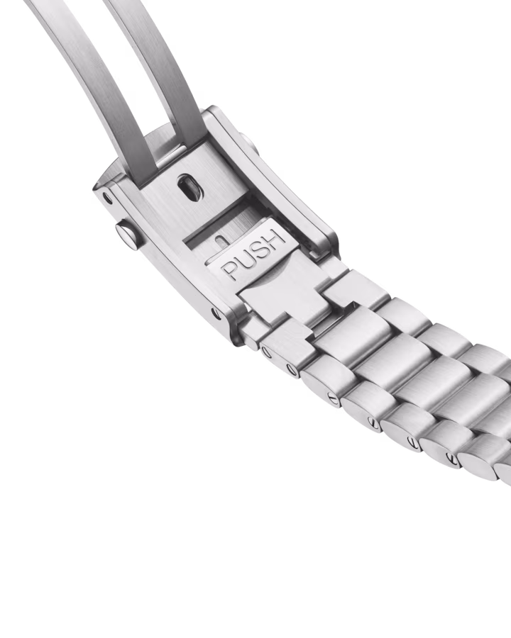 Other features include an alveol screw-in caseback and a stainless steel bracelet with patented extendable foldover clasp