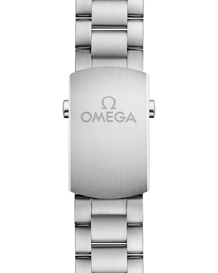 This model, with its scratch-resistant sapphire crystal, features a Black ceramic dial with Arabic numerals and a date window at the 3 o’clock position. The Black ceramic unidirectional bezel with OMEGA Liquidmetal™ diving scale is mounted on a 39.5 mm stainless steel case.