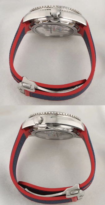 Blue Ceramic Bezel with Blended Red Rubber for First 15 Minutes