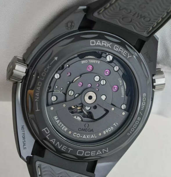Presented on a black and grey structured rubber strap with Grade 5 titanium buckle, this watch is driven by the Co-Axial Master Chronometer Calibre 8906 Titanium. The unique and ultra-light movement sits behind a NAIAD LOCK caseback with anti-reflective sapphire crystal treated on both sides and chromium nitride markings.