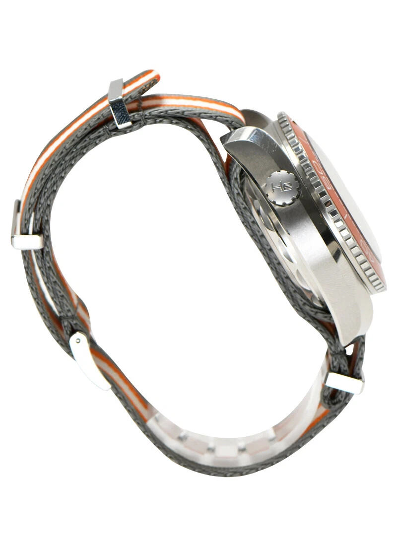 Helium escape valve: Decompression system which allows helium to escape from inside the watch when the watch is worn for professional use in pressure chambers. (Long-term underwater work, crude oil exploration, etc.)