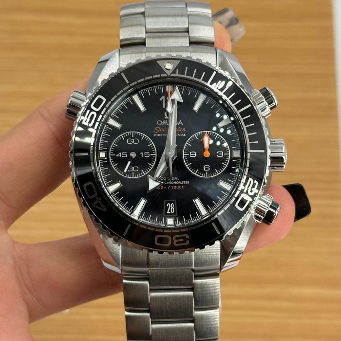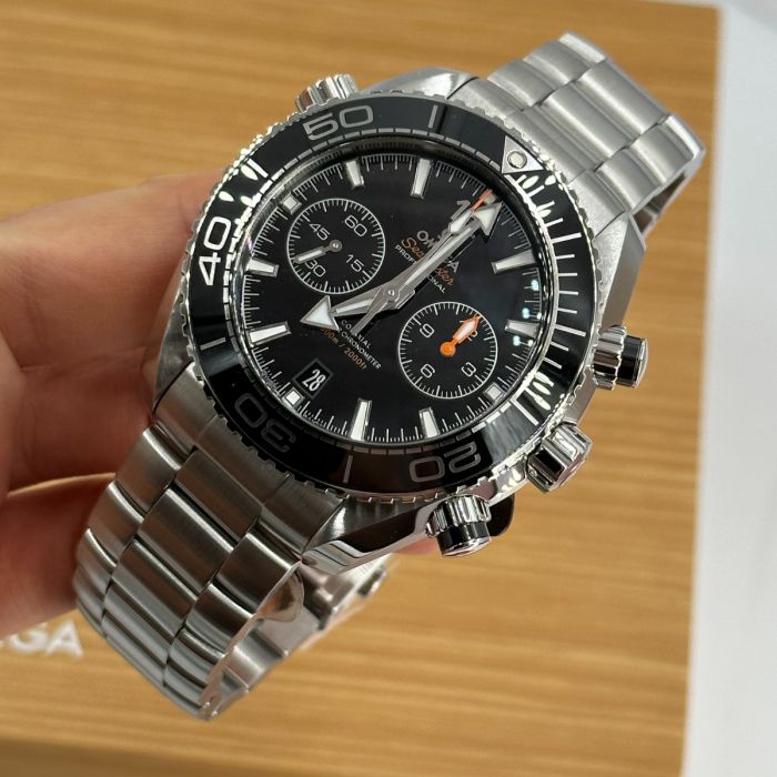 The OMEGA Seamaster Planet Ocean 600M Master Chronometer Chronograph is water resistant to 60 bar (600 metres / 2000 feet), and has a helium-escape valve. The OMEGA Master Chronometer calibre 9900 at the heart of this timepiece can be seen through the transparent caseback. To achieve Master Chronometer status, it has passed the 8 rigorous tests set by METAS (The Swiss Federal Institute of Metrology).