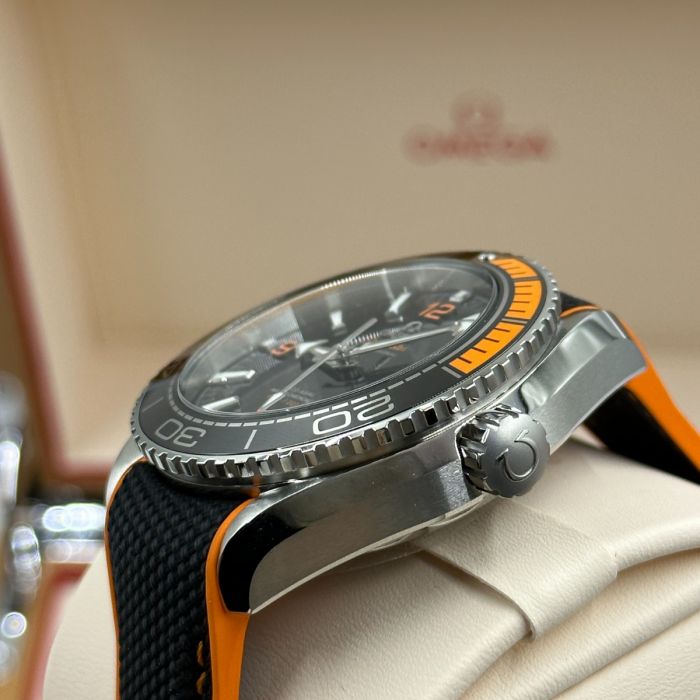 The OMEGA Seamaster Planet Ocean 600M Master Chronometer is water resistant to 600 metres / 2000 feet / 60 bar, and has a helium-escape valve. The OMEGA Master Chronometer calibre 8900 at the heart of this timepiece can be seen through the transparent caseback. To achieve Master Chronometer status, it has passed the 8 rigorous tests set by METAS (The Swiss Federal Institute of Metrology).