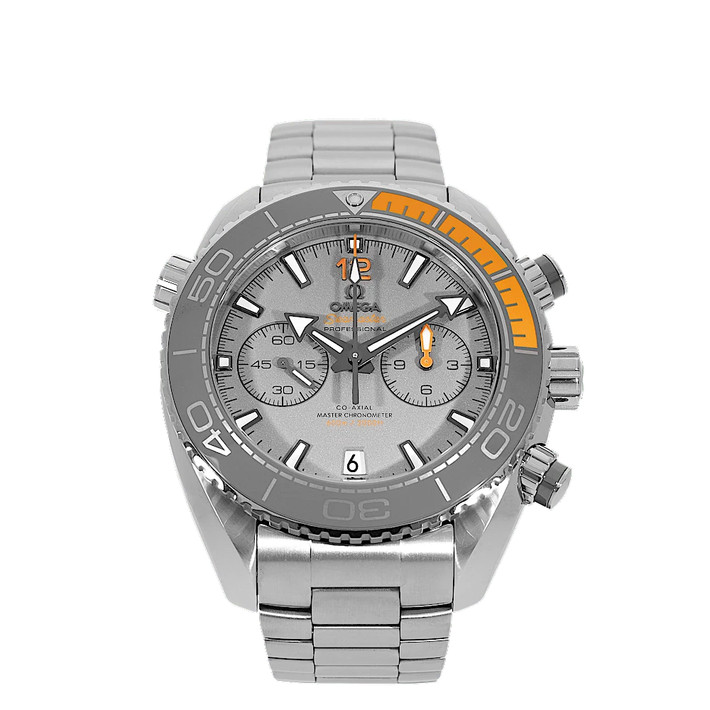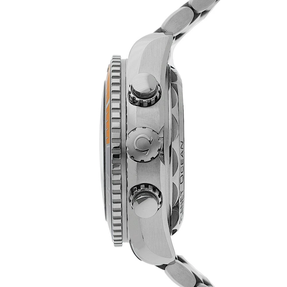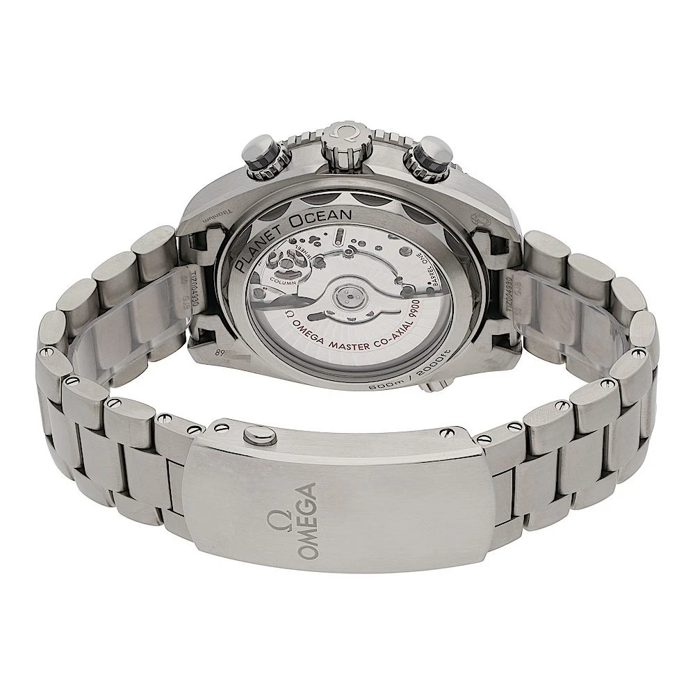 The OMEGA Seamaster Planet Ocean 600M Master Chronometer Chronograph is water resistant to 60 bar (600 metres / 2000 feet), and has a helium-escape valve. The OMEGA Master Chronometer calibre 9900 at the heart of this timepiece can be seen through the transparent caseback. To achieve Master Chronometer status, it has passed the 8 rigorous tests set by METAS (The Swiss Federal Institute of Metrology).