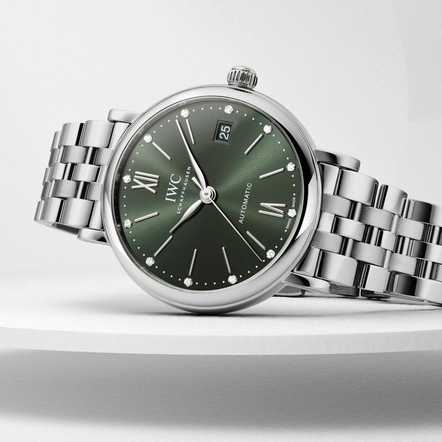 • 【7A Quality】IWC Portofino Automatic 37mm Green Diamond Dial Steel Women's Watch IW458602
