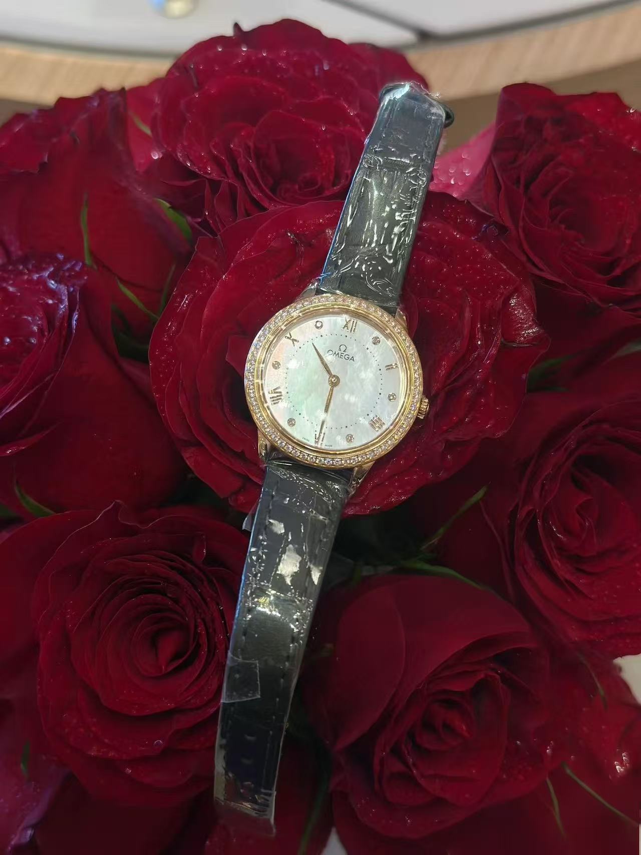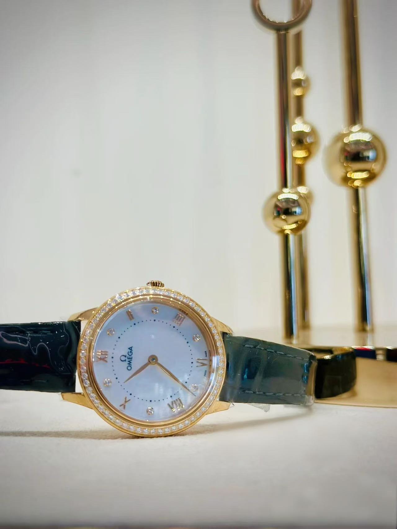 • 【7A Quality】Omega De Ville Prestige 30mm White Dial with Diamonds 18k Yellow Gold Strap 434.58.30.60.55.002