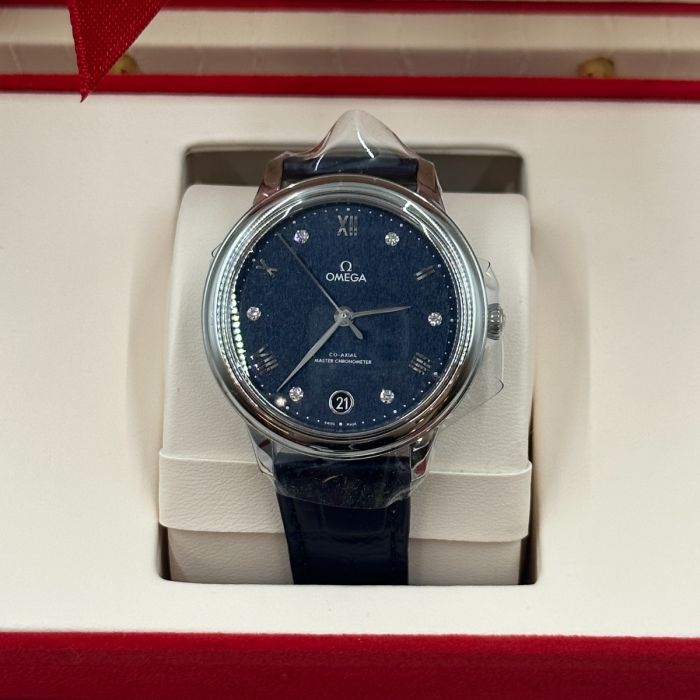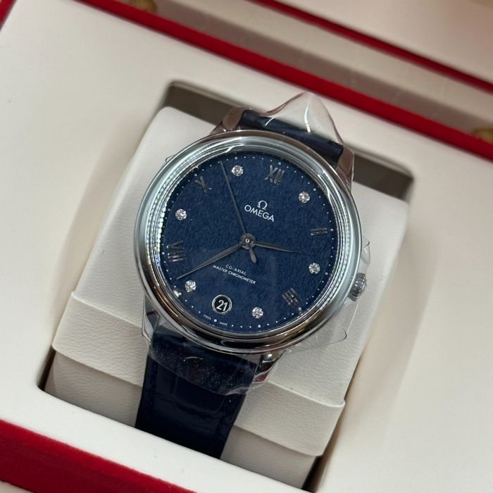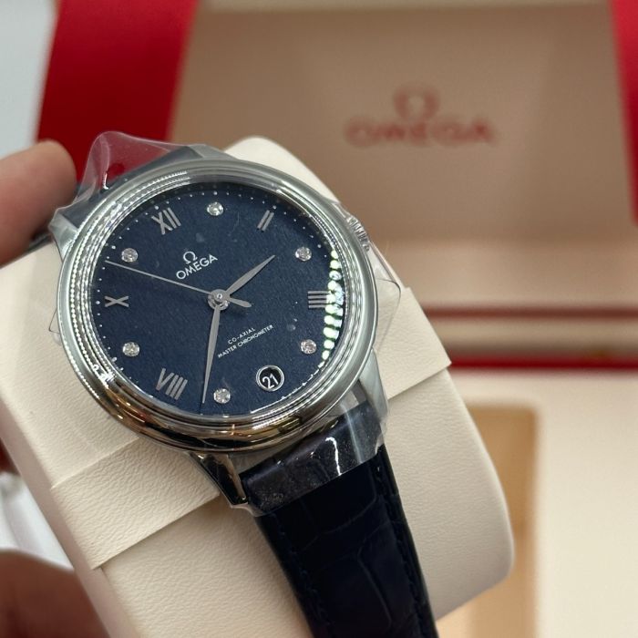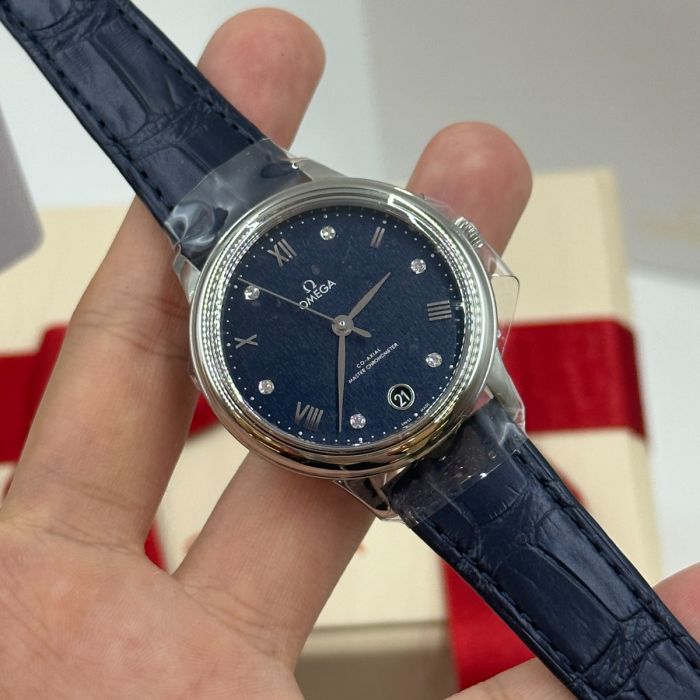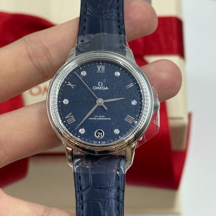 • 【7A Quality】Omega De Ville Prestige 34 mm Blue Dial with Diamonds Stainless Steel Strap 434.13.34.20.53.002