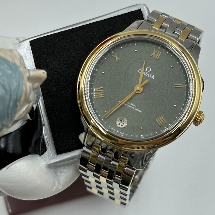 Discover the exceptional craftsmanship of the OMEGA De Ville Prestige - a distinguished timepiece curated by WATCHXNYC. Embodying generations of horological mastery, this Omega De Ville Prestige 34 mm Green Dial Stainless Steel and 18k Yellow Gold Bracelet 434.20.34.20.10.001 demonstrates why OMEGA stands among the world's most respected watchmakers.