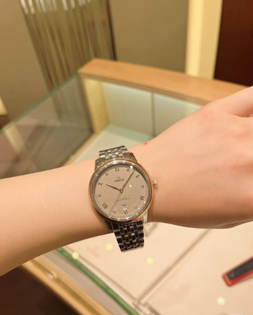 • 【7A Quality】Omega De Ville Prestige 40 mm Linen Dial with Diamonds Stainless Steel and Sedna™ 18k Rose Gold Bracelet 434.20.40.20.59.001