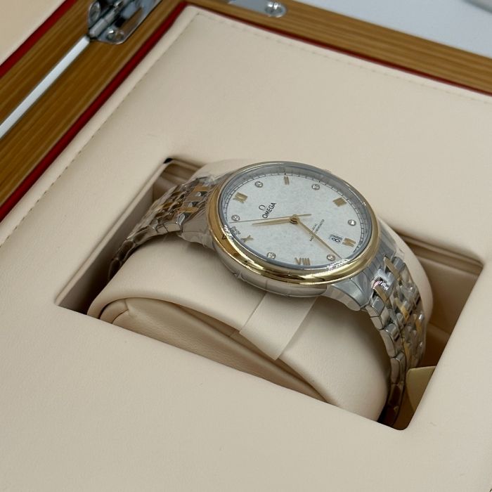 Discover the exceptional craftsmanship of the OMEGA De Ville Prestige - a distinguished timepiece curated by WATCHXNYC. Embodying generations of horological mastery, this Omega De Ville Prestige 40 mm Silver Dial with Diamonds Stainless Steel and 18k Yellow Gold Bracelet 434.20.40.20.52.001 demonstrates why OMEGA stands among the world's most respected watchmakers.