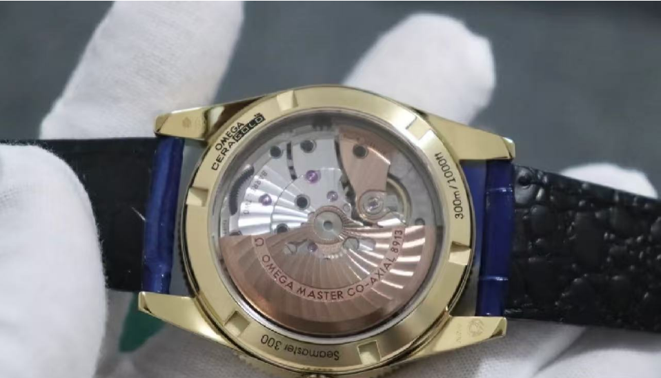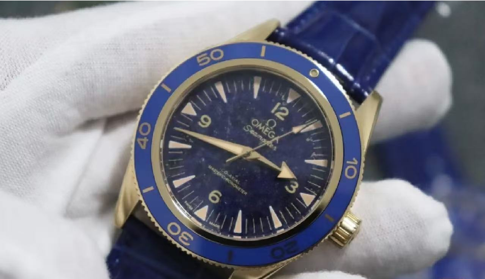 Unworn Omega Seamaster 300 CO‑AXIAL MASTER CHRONOMETER 234.63.41.21.99.002. 41 mm, Blue dial, Yellow gold case, Ceramic bezel, 8913 calibre, Self Winding Movement, 60 hours power reserve, Leather strap with Foldover clasp. Water resistant to 300 m.