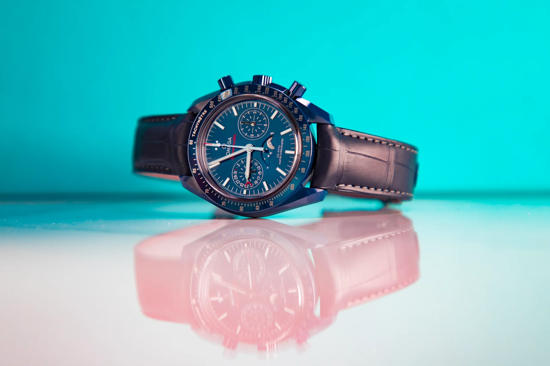 • 【7A Quality】Omega Speedmaster Moonphase Blue Dial 44.25mm Blue ceramic Strap 304.93.44.52.03.001